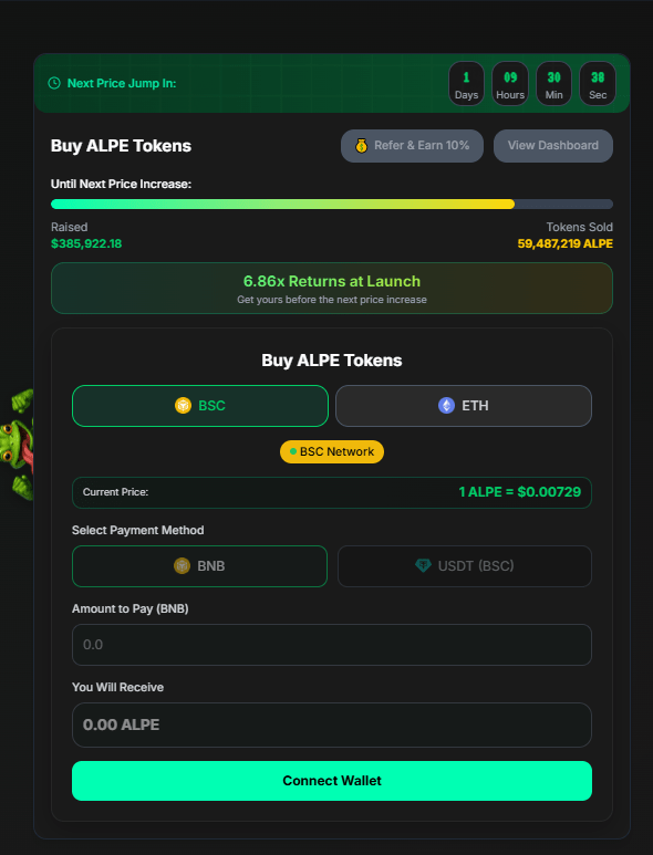 AlphaPepe (ALPE) is a meme coin project built on the BNB Chain that aims to transcend pure viral hype by integrating utility, community incentives and structural safeguards. AlphaPEPE was born from pure degen instinct. While normie frogs scroll TikTok, AlphaPEPE lifts charts and slaps sell