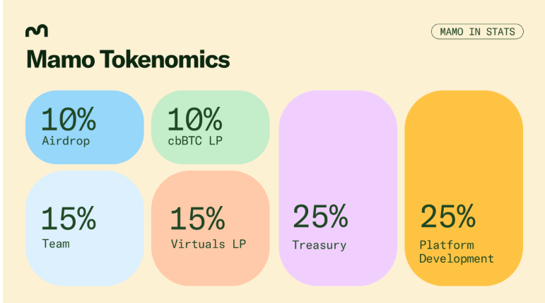 Mamo’s tokenomics structure is straightforward and community-focused. The total supply is capped at 10 billion tokens, with allocations distributed as follows: