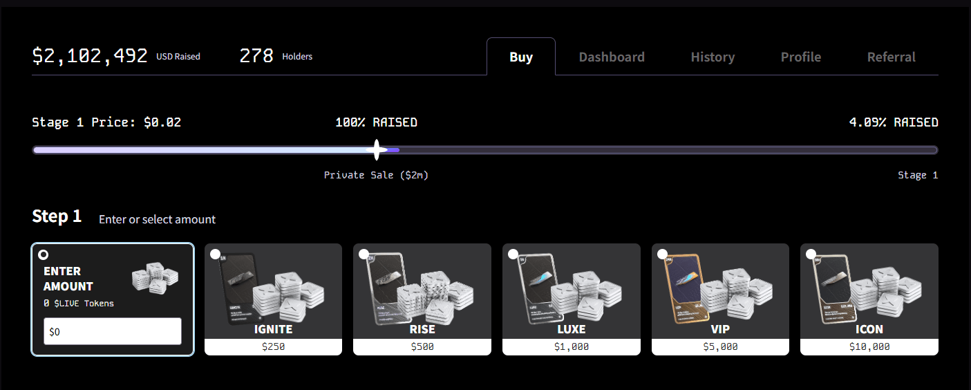 3. Purchase to Receive $LIVE