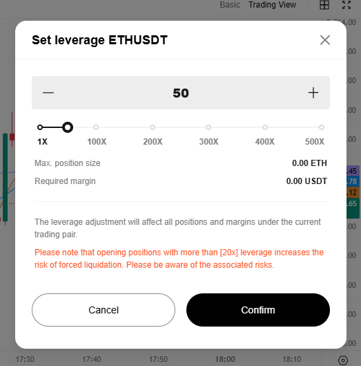 Please keep in mind that operating leverage carries the risk of liquidation. Leverage should be adjusted based on your financial status and risk tolerance.