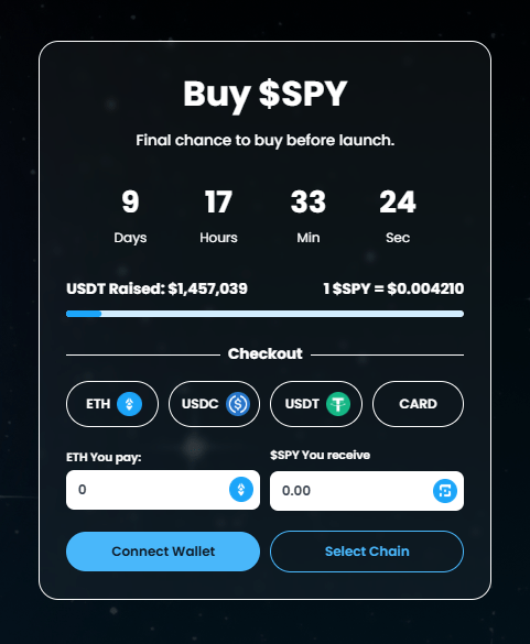 Based on the principle of token utility, the SPY token might become a big deal quickly. This is also obvious from the attention the token has drawn in the ongoing presale.