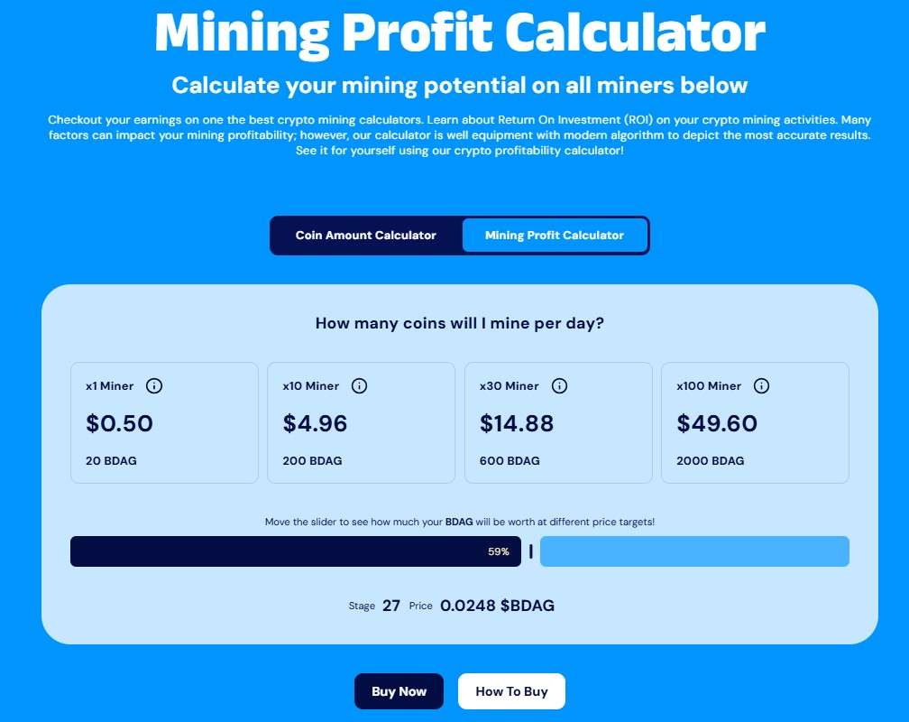 Avant d’investir dans du matériel, il est essentiel d’estimer vos gains potentiels. BlockDAG propose un calculateur de minage permettant d’évaluer vos revenus en fonction de votre configuration.