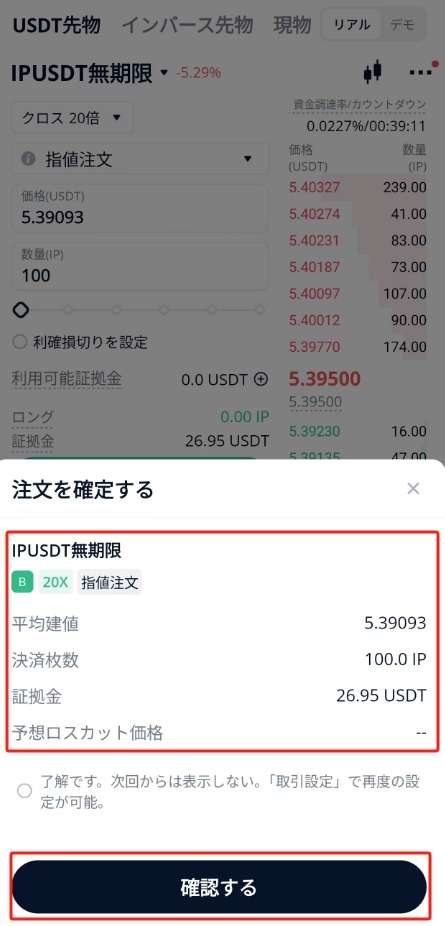 詳細を確認して、注文を確定してください。