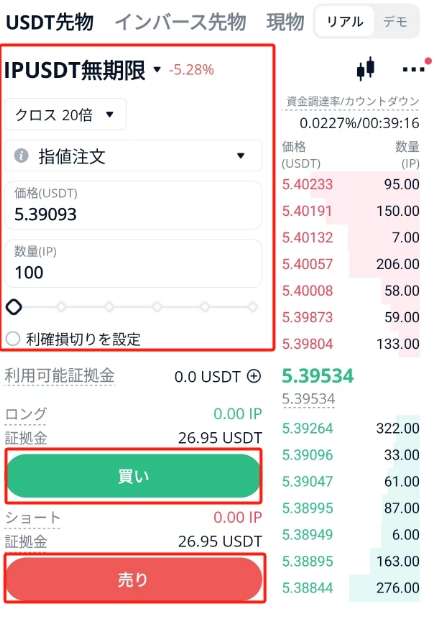 注文価格と注文数量を入力し、取引の方向を選択します。買い注文または売り注文を選択できます。