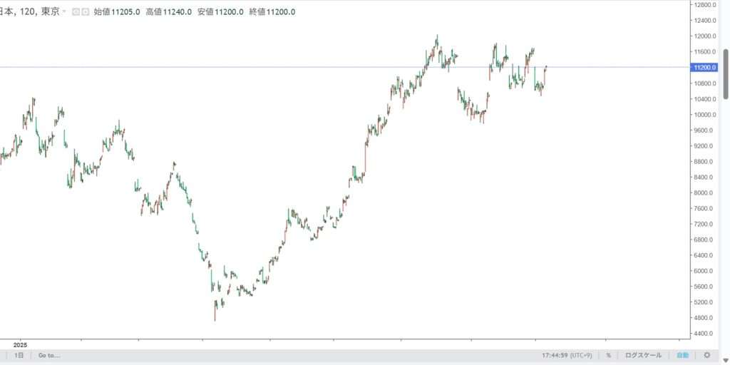 2025年だけで2000円以上の上昇をしており、これは日経平均株価と同程度の上昇率です。