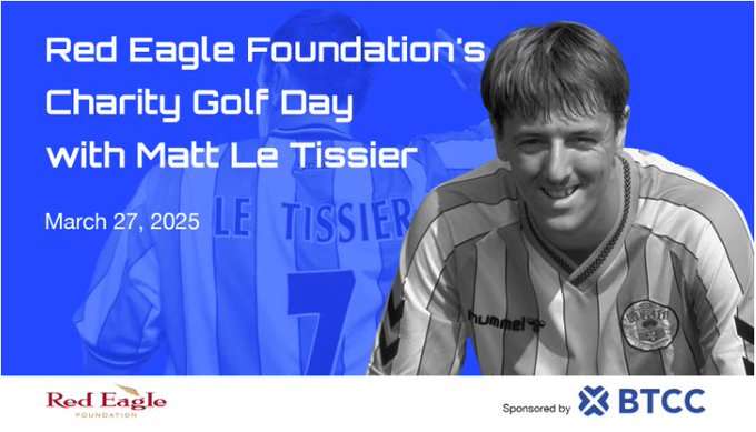 仮想通貨取引所BTCCは2025年3月27日、サッカー界のレジェンド Matthew Le Tissier 氏(マット・ル・ティシエ) を迎えたレッド・イーグル財団のチャリティーゴルフデースポンサーに就任したことを発表しました。