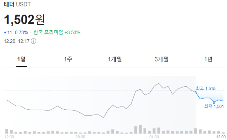특히 암호화폐 시장의 변동성이 클 때, 국내 투자자들이 현금화(스테이블코인으로 전환)하기 위해 테더 매수 수요가 급증하면 김치 프리미엄이 발생하면서 테더의 원화 가격이 상승할 수 있습니다.