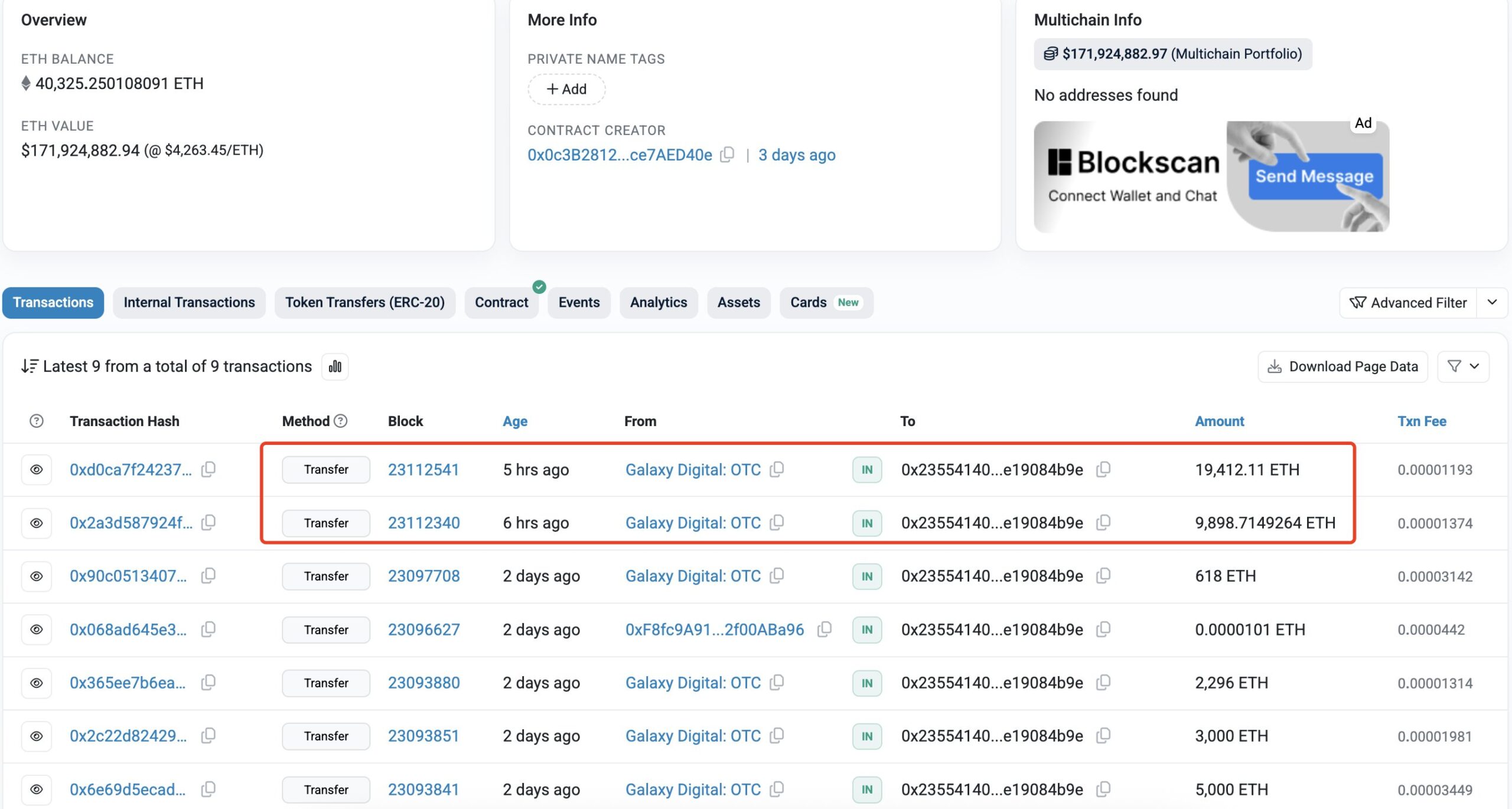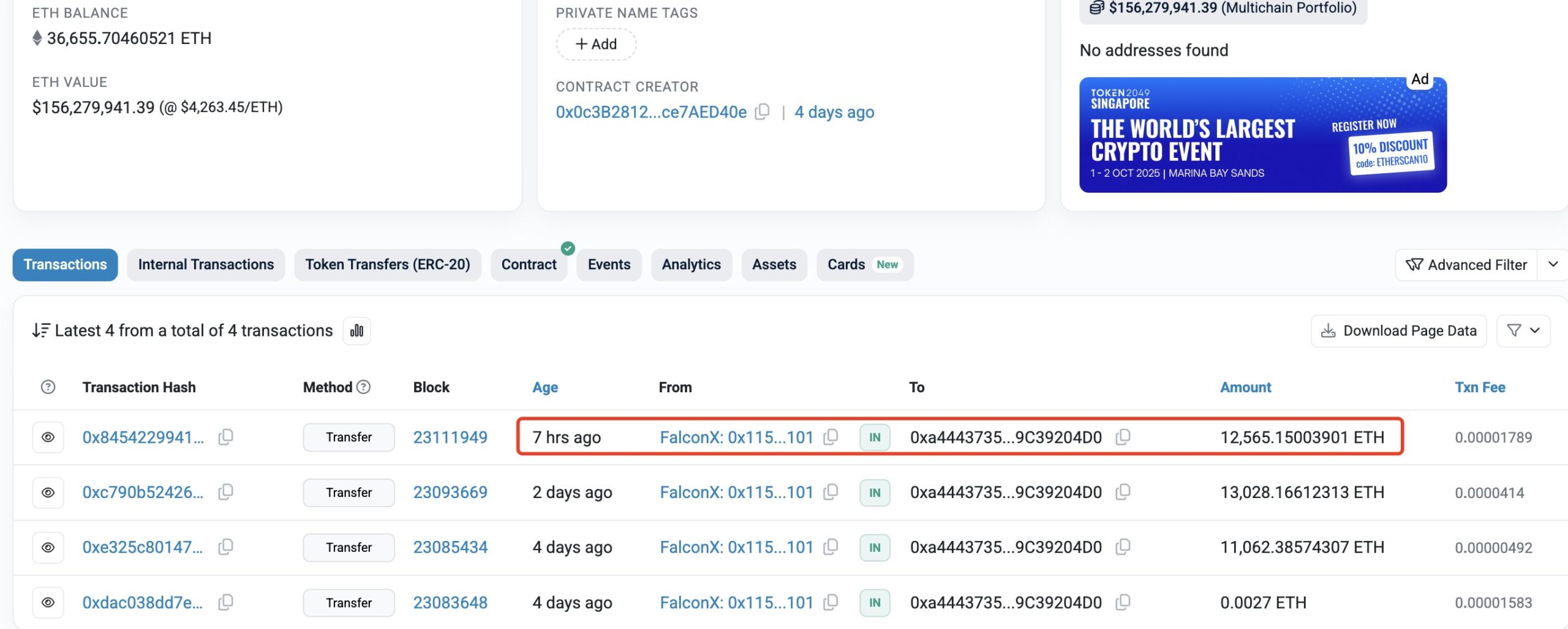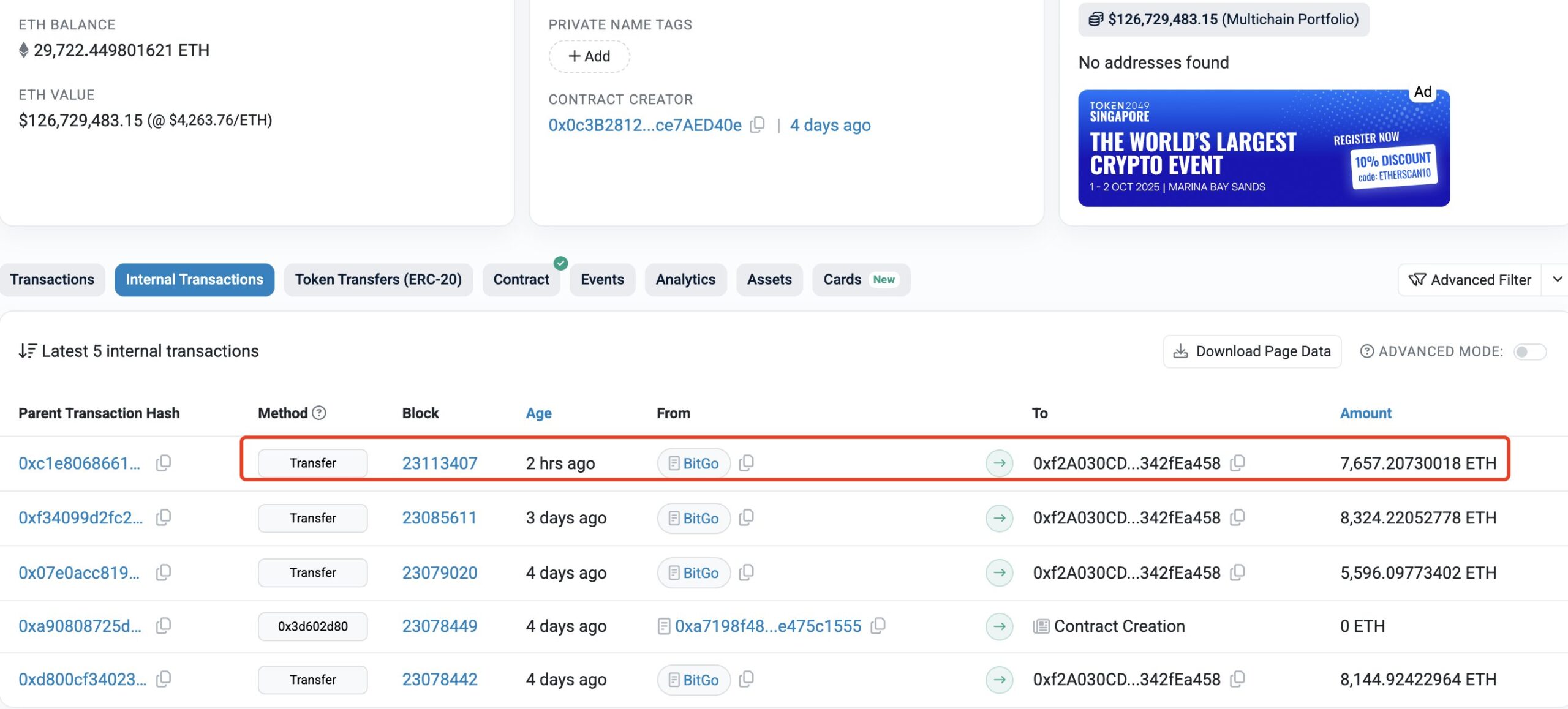 За даними трекера, покупець використовує шість різних гаманців, отримуючи монети через Galaxy Digital, FalconX та BitGo. Найбільший гаманець містить ETH на $181 млн, найменший — на $128 млн. Це відбувається на фоні того, що кількість адрес з понад 10 000 ETH досягла 868 886 — максимуму за рік, за даними Glassnode.