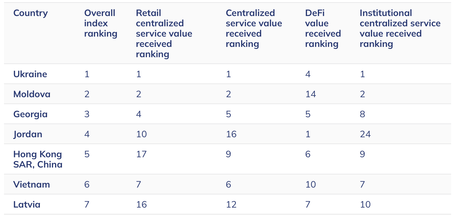 Дослідження охопило 151 державу та враховувало активність у централізованих сервісах, DeFi, інституційних операціях та роздрібному використанні. Поруч із Україною у списку виявилися Молдова та Грузія. Аналітики пояснюють цю динаміку поєднанням економічної нестабільності, недовіри до традиційних фінансових інституцій та високої технічної грамотності населення.