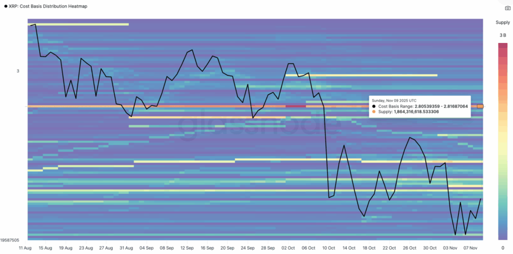 แต่ “ด่านหิน” ที่แท้จริงคือ $2.80 ข้อมูลจาก Glassnode เผยให้เห็นว่า ที่ราคานี้ “มีอุปทาน (Supply) หรือ ‘ดอย’ ก้อนมหึมา” รออยู่ โดยมี XRP ถึง 1.86 พันล้านเหรียญ ที่ถูกซื้อไปในบริเวณนี้ ซึ่งพร้อมที่จะ “เทขาย” ทันทีที่ราคาฟื้นตัวกลับมาถึงทุน