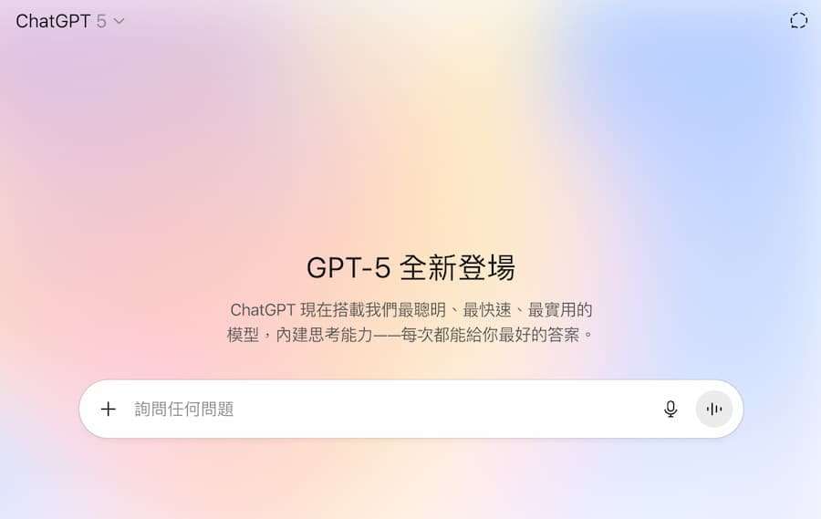 開始輸入問題、撰寫內容、建議任務,GPT-5 即會執行。