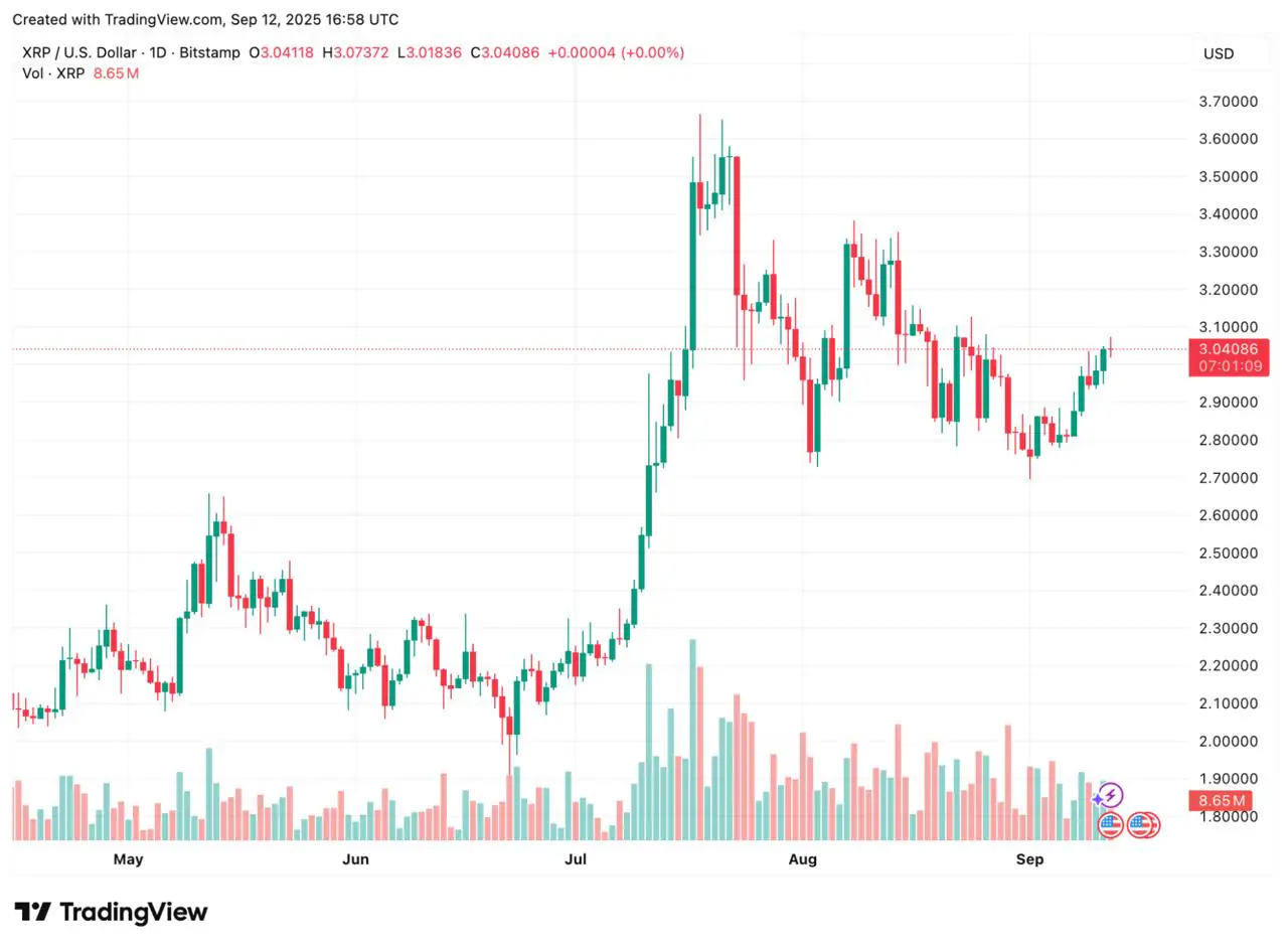 XRP 再次復蘇。 在從支撐位反彈後,它突破了關鍵趨勢線,目前維持在 3 美元上方。 許多交易員認為,如果勢頭保持強勁,XRP 可能會向 3.50 美元至 4.00 美元邁進。