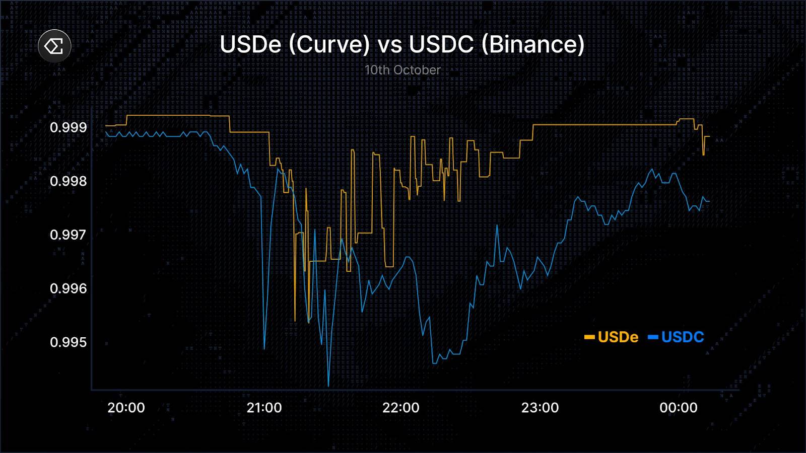 流動性匱乏與基礎設施缺陷:幣安並非USDe的主要交易市場,其平台上USDe流動性只有幾千萬美元量級,相比Curve等有上億美元池子的場所要淺得多。 正常情況下,專業做市商可以通過USDe的鑄造/贖回機制在各平台之間套利,確保價格一致。 但幣安當時沒有與Ethena團隊建立直接的贖回通道,且極端行情下幣安的充值提現也出現暫時障礙。 結果,當幣安自身基礎設施在暴跌中不堪重負,市價偏離無法通過外部流動性及時糾正,USDe在幣安的買盤很快被耗盡,賣單將價格砸穿錨定價。