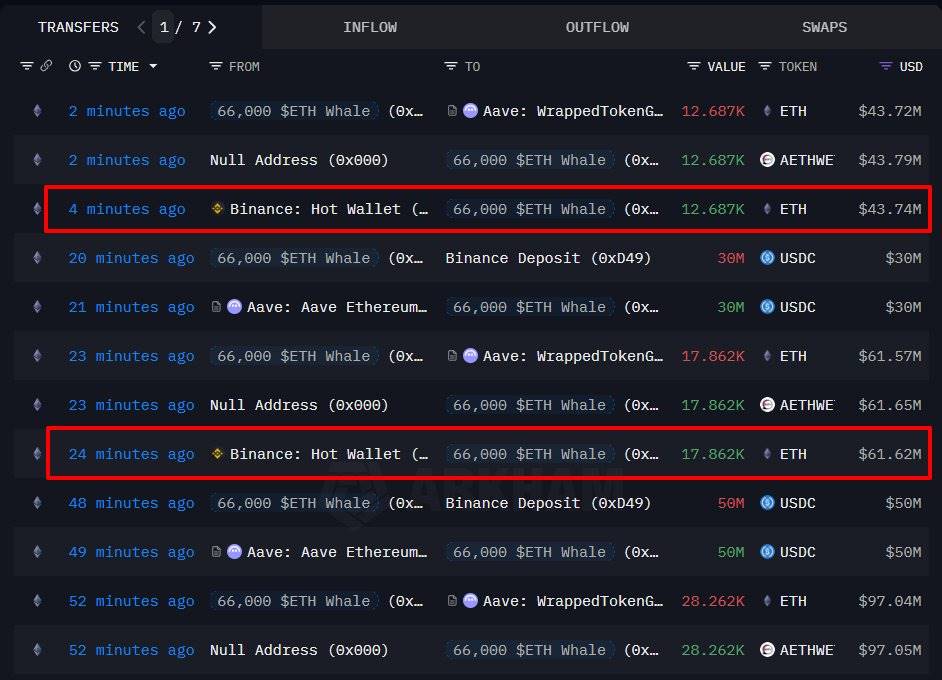 深潮 TechFlow 消息,11 月 12 日,據 Onchain Lens 監測,此前借入並做空 66,000 枚 ETH 的某鯨魚再次從幣安購入 30,549 枚 ETH,價值 1.05 億美元。 該鯨魚當前總計持有 385,713 枚 ETH,總價值達 13.3 億美元。