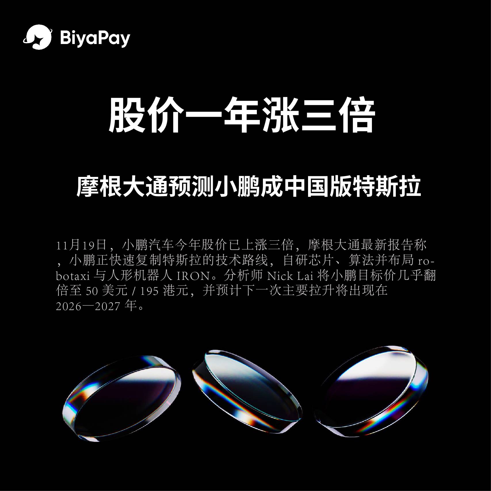 BiyaPay 分析師:股價一年漲三倍,摩根大通預測小鵬成中國版特斯拉
