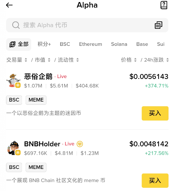 Binance alpha 已上線 BNBHOLDER、惡俗企鵝