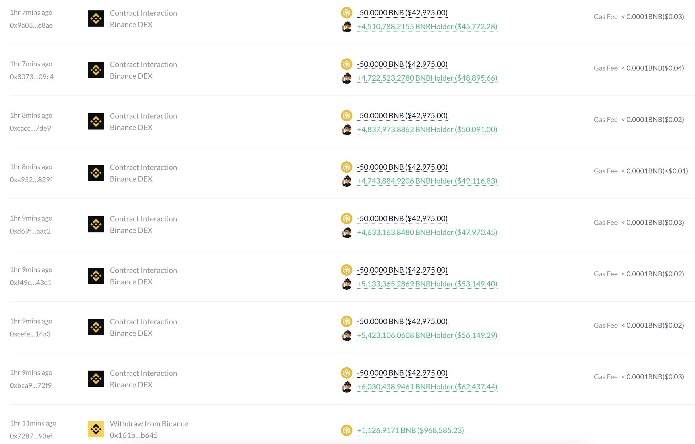某鯨魚花費 96.3 萬美元購入 8620 萬枚 BNBHolder 代幣,佔總供應量的8.62%