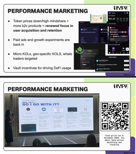 由於重心轉向用戶獲取和留存,績效營銷再度興起。 這要求具備完善的追踪系統(鏈上、產品 / 網站、渠道)、增長實驗、付費與免費媒體結合、從社交任務到流動性任務的演變、精準 KOL 營銷等。