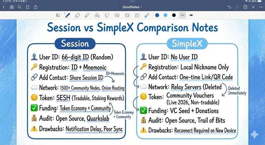 兩種路線各有利弊。 Session 的代幣模型能快速吸引節點運營者和資本關注,但也讓項目暴露在幣價波動和監管風險中。 SimpleX 的去金融化設計保持了項目的純粹性,但資金來源有限,擴張速度會更慢。