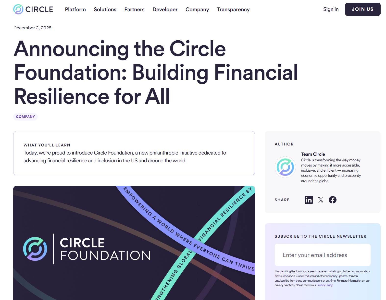 Circle 宣布成立基金會,致力於推進美國及全球的金融韌性和包容性