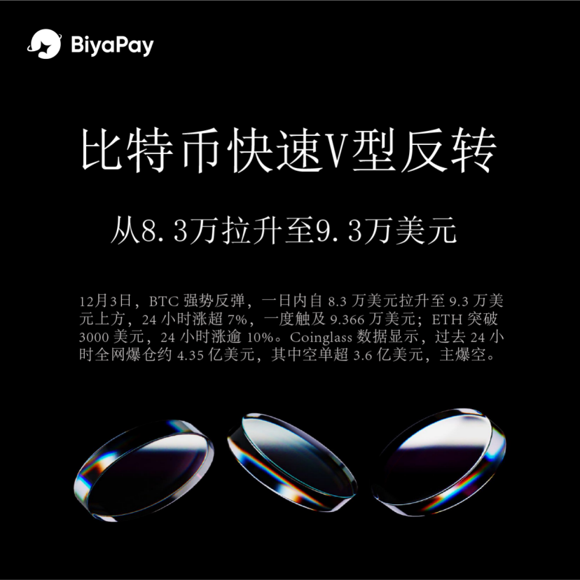 BiyaPay分析師:比特幣快速V型反轉,從8.3萬拉升至9.3萬美元
