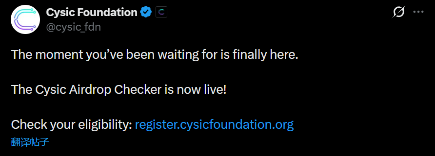 深潮 TechFlow 消息,12 月 3 日,據官方公告,ZK 硬件公司 Cysic 官方基金會於 X 平台發文表示,Cysic 代幣空投檢測網站現已上線。