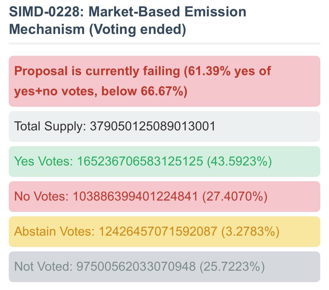 Solana SIMD-0228 提案未獲通過