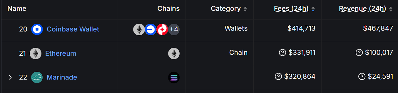 以太坊 24 小時收入降至 10 萬美元,排名第 21 位