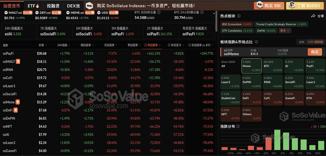 加密板塊多數上漲,Meme 板塊領漲2.35%,BTC 突破85000美元