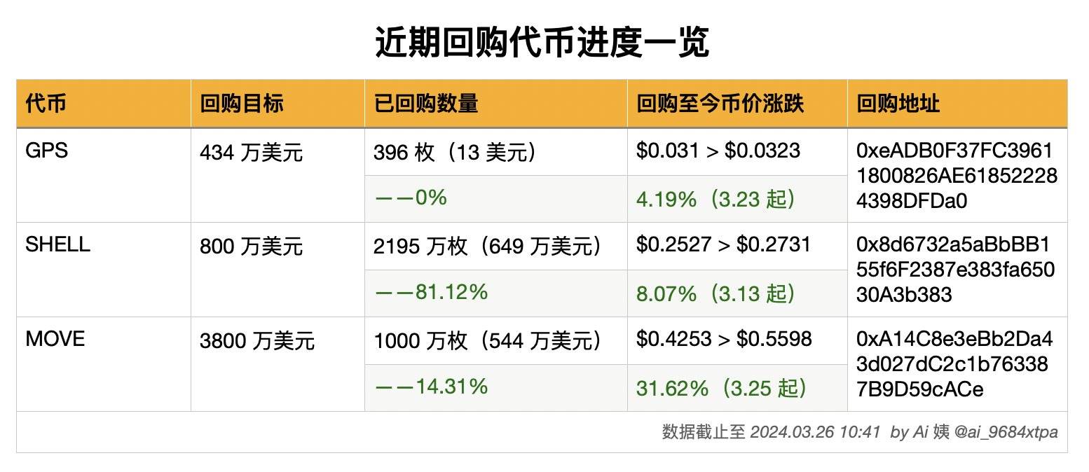 $MOVE:回購進度為 14.31%,自 3 月 25 日至今幣價上漲 31.62%;