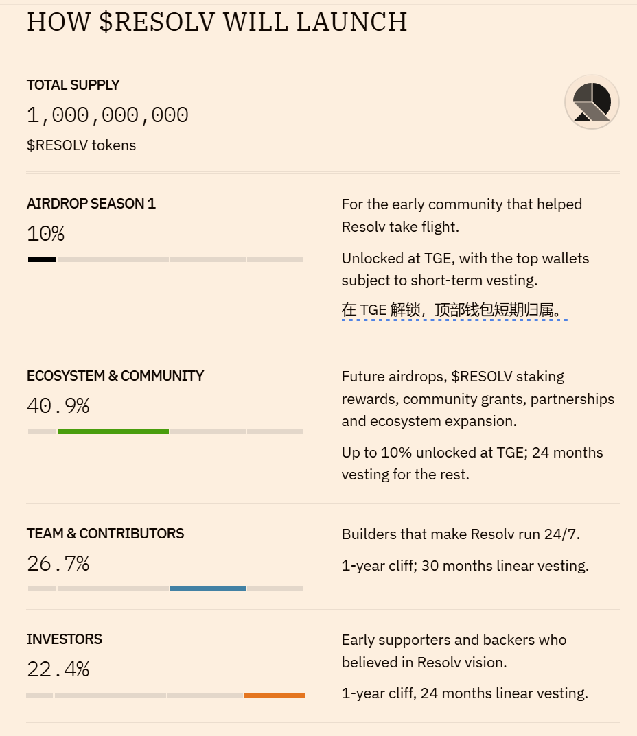 DeFi 協議 Resolv 公佈代幣經濟學模型:空投第一季佔比10%