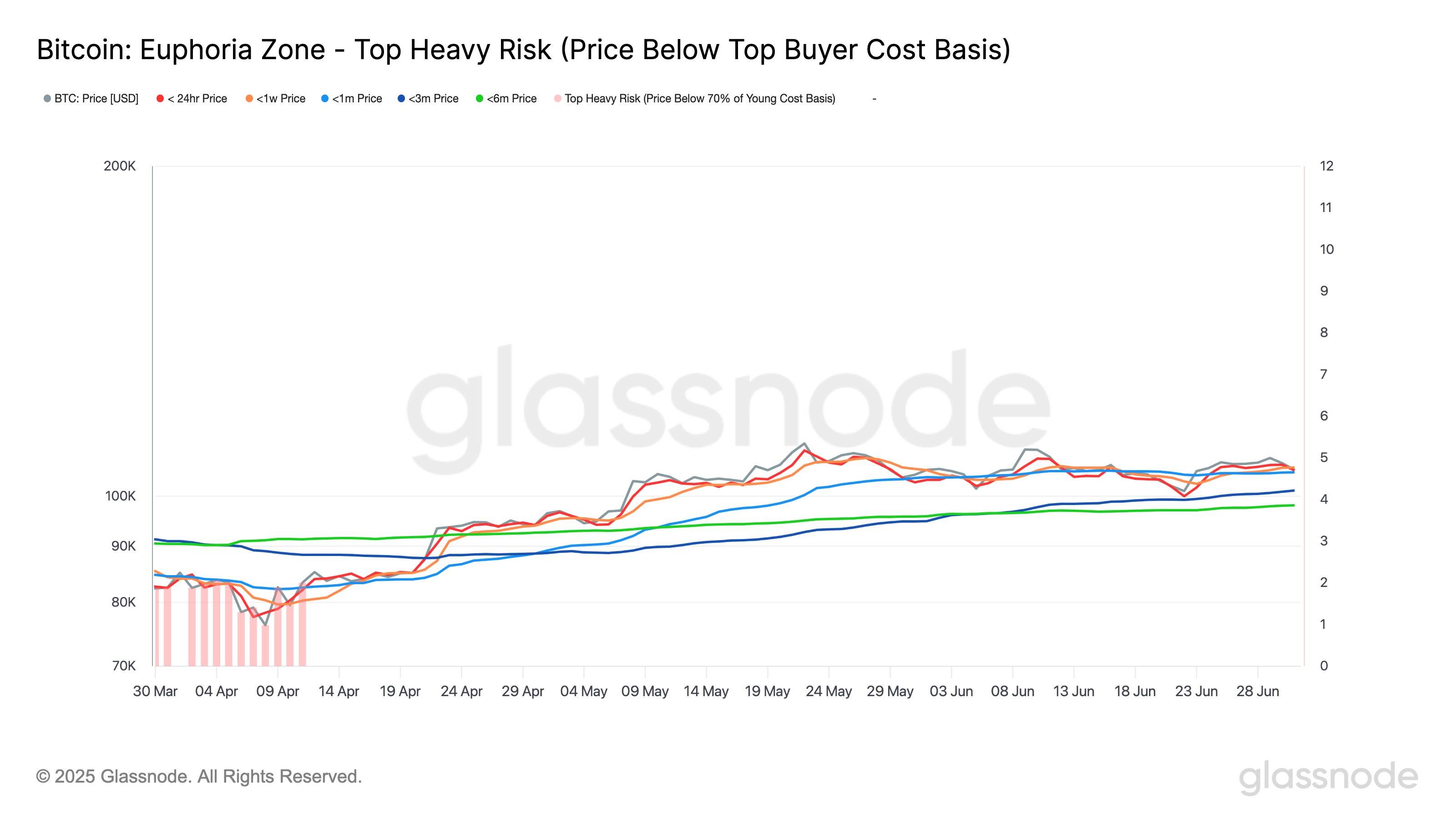 深潮 TechFlow 消息,7 月 2 日,據 Glassnode 數據,比特幣價格回調幅度有限,目前仍維持在 1 個月已實現價格(realized price) 105,100 美元 之上。 其他不同時間週期的已實現價格分別為:24 小時內為 105,600 美元,1 週內為 106,300 美元,3 個月內為 101,200 美元,6 個月內為 98,100 美元。