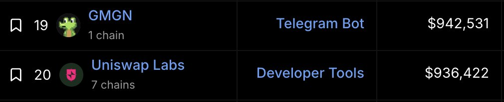 深潮 TechFlow 訊息,根據 defiLlama 數據顯示,GMGN.Ai 過去 24 小時收入達 94.25 萬美元,超過 DeFi 協議 Uniswap。