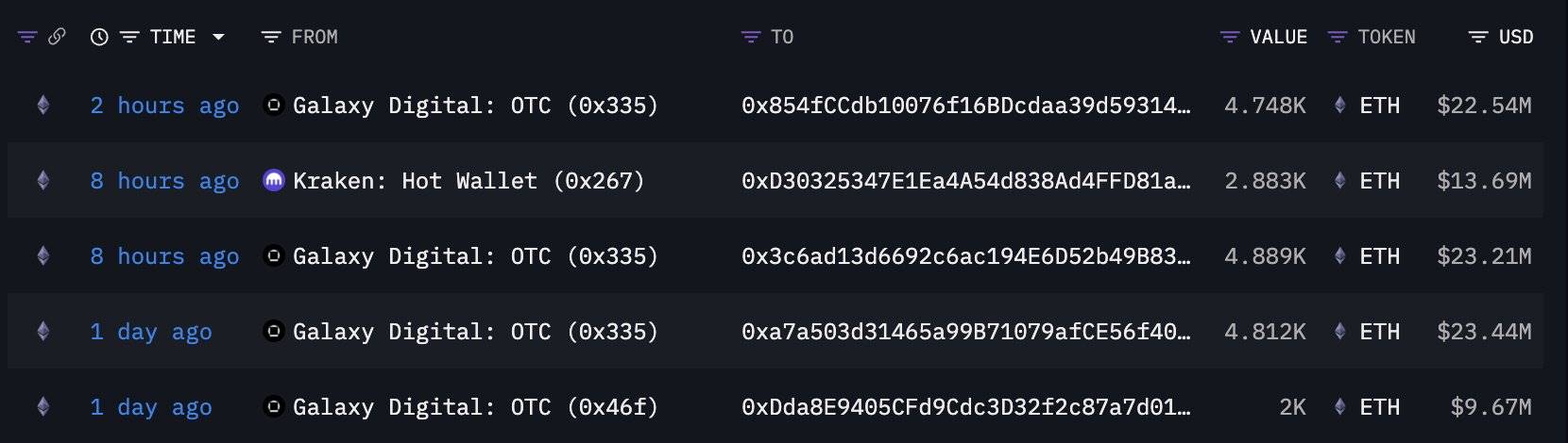 5 個新建錢包兩日內累計增持 19,332 枚以太坊,價值約 9,200 萬美元