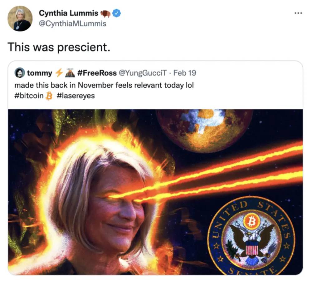 最典型的就是那些“激光眼”頭像,個人簡介裡可能就一個詞:Bitcoin。