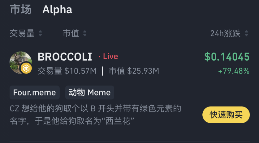 深潮 TechFlow 消息,2 月 19 日,據官方消息,Binance Alpha 新增 Broccoli(BROCCOLI),合約地址 0x23d...f2b。